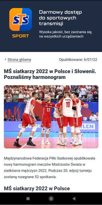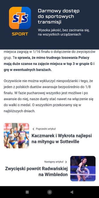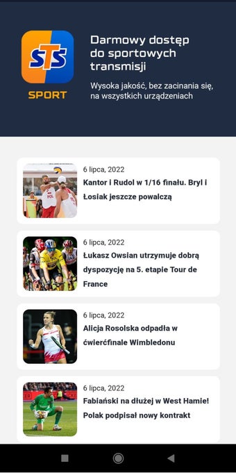 Bezpłatna aplikacja na Androida od STS Sport App.